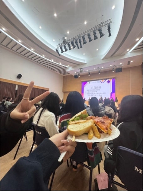 参与了迎新活动。在参与迎新活动的过程中,最令我难忘的,是所有交流生围坐一起,大家品尝着学校精心准备的美食,一同参与互动破冰小游戏的场景。在欢乐融洽的氛围里,我们自然而然地拉近了彼此间的距离,加深了交流互动,也让大家在欢声笑语中对彼此有了更为深刻的印象。