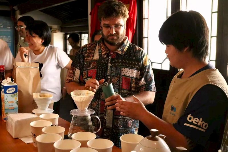 10月17日下午,由越城区人民对外友好协会主办、浙江啡坭文化发展有限公司协办的“酒咖跨界”主题沙龙活动在越城区Niduu kafe馆温情启幕。我校15名外籍教师受邀参与,在“黄酒”与“咖啡”的跨界碰撞中,沉浸式感受绍兴传统文化魅力和中外文化交融的活力。