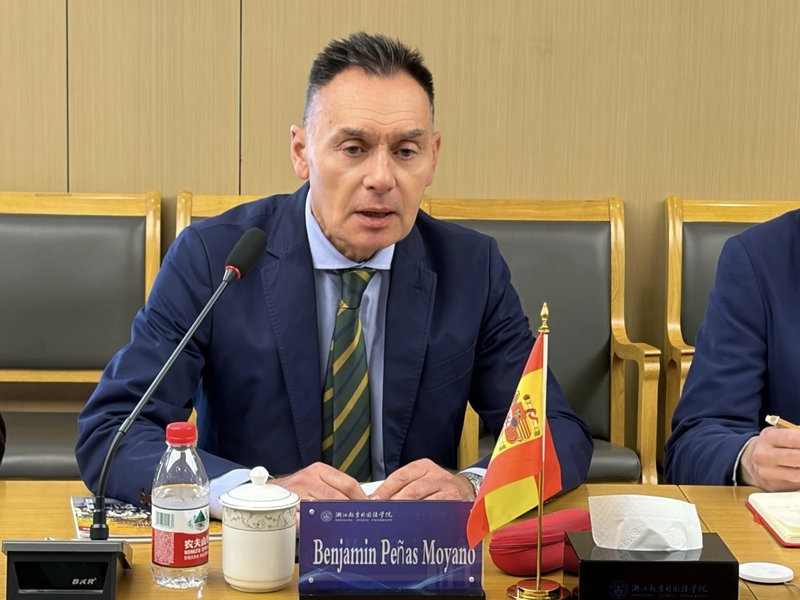 本杰明·佩尼亚斯·莫亚诺对我校的热情接待表示感谢,他充分肯定了我校的办学特色、教育理念,对我校的学科专业融合、育人模式创新表示赞许。他介绍了巴利亚多利德大学的基本情况,作为西班牙公立大学,西班牙巴利亚多利德大学不仅有着深厚的文化底蕴、完备的基础设施、坚实的科研平台,还配备了多样的体育场所,为师生的学术研究与课余生活提供了有力支持。他还着重分享了该校在医学、教育学、葡萄酒研究等领域的优势特色,希望推进与我校的合作。