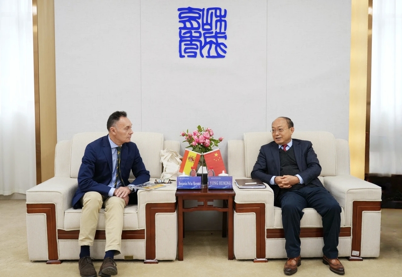 12月16日,西班牙巴利亚多利德大学副校长本杰明·佩尼亚斯·莫亚诺访问我校,巴利亚多利德大学医学院院长爱德华多·阿兰斯·桑斯、医学院副院长路易斯·科拉尔·古迪尼奥,西班牙中西文化艺术学校校长沈健陪同。校长雍和明会见来宾,双方就校际合作备忘录签署、双向教育交流合作、科研合作平台建设等议题进行了深入交流。副校长葛金玲、西方语言学院院长龚茜、留学生教育学院副院长王佳平、国际合作交流处副处长余玲、西方语言学院西班牙语系副主任彭璐娇参加会谈。