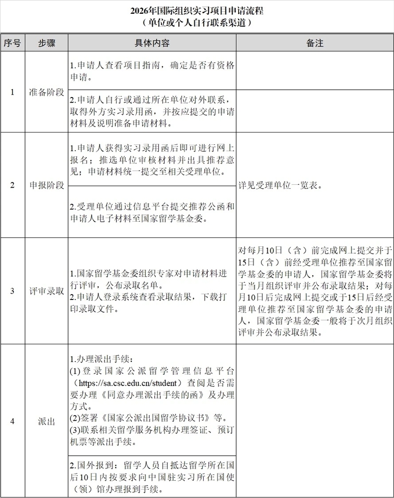 2.2026年国际组织实习项目(国家留学基金委与有关国际组织合作项目)申请流程及应提交的申请材料及说明