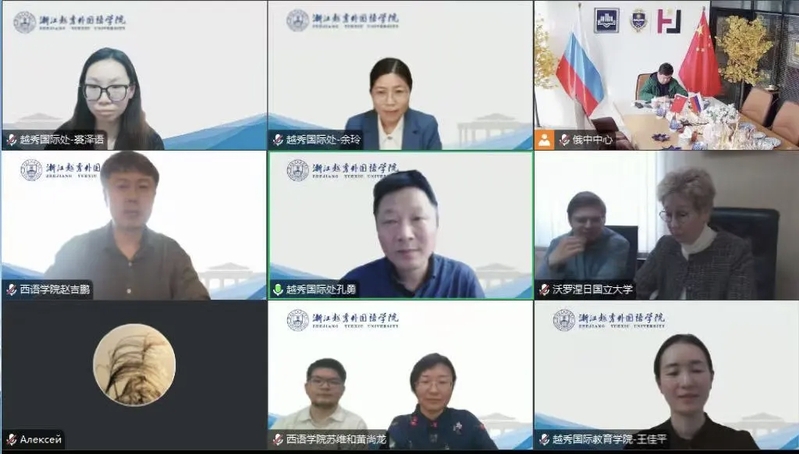 4月10日下午,我校与俄罗斯沃罗涅日国立大学举行线上会议。沃罗涅日国立大学外国语学院院长奥莉加、中文系主任达尼拉、俄中中心副主任夏星辰以及教师王锐、于洋,我校国际合作交流处处长孔勇、副处长余玲,国际教育学院副院长王佳平,西方语言学院院长助理赵吉鹏、俄语系主任苏维及教师黄尚龙出席会议。双方围绕学科建设、人才培养、师生交流等议题深入交换意见,并就未来合作模式达成初步共识。会议由夏星辰主持。